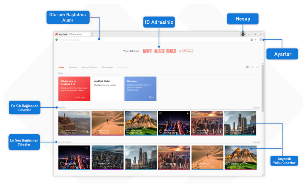 - Program açıldığında ekranda benzersiz bir AnyDesk adresi (9 haneli kod) görünür.